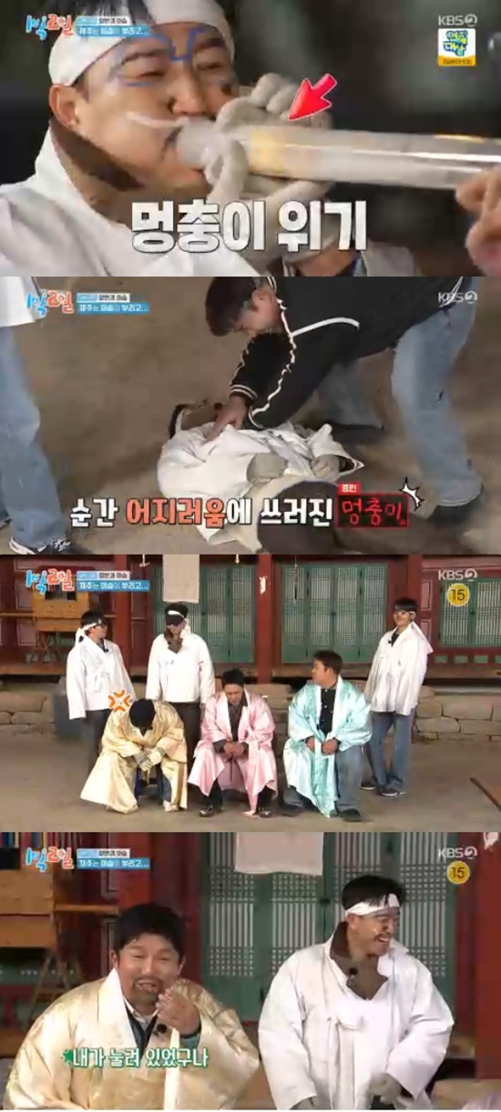 이날 멤버들은 양반, 머슴으로 나뉘어 저녁복불복 게임을 시작했다. 머슴 3인방 김종민, 딘딘, 유선호는 미션이 나올 때마다 쉬지 않고 미션을 수행했다.