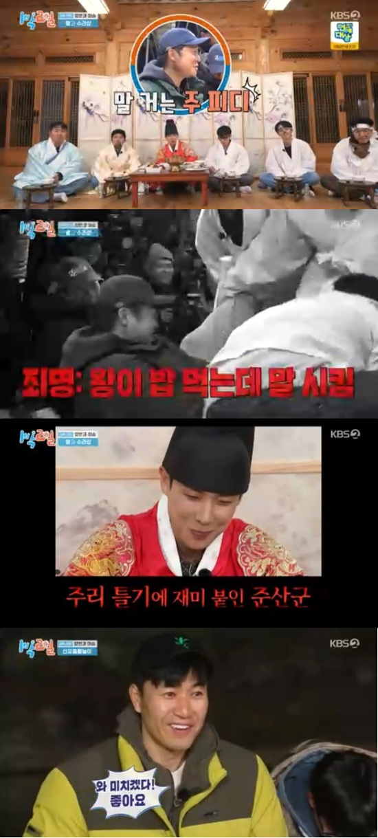 이준은 밥을 먹으려는데 주종현PD가 말을 걸자 갑자기 "주리를 틀어라"라는 지시를 내렸다. 멤버들은 주종현PD에게 달려들어 웃음을 자아냈다.