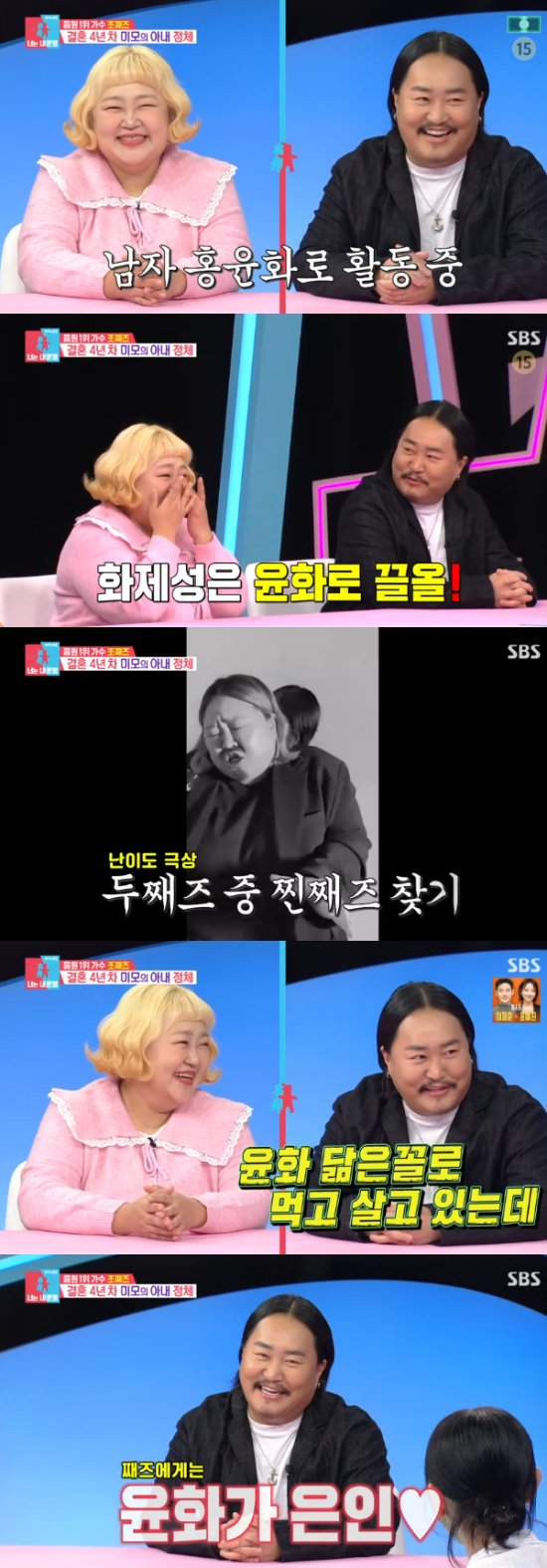 그리고 이날 조째즈는 스튜디오에 함께 출연한 홍윤화와 완벽하게 닮은꼴을 자랑하면서 "윤화가 저한테는 은인"이라고 했다.