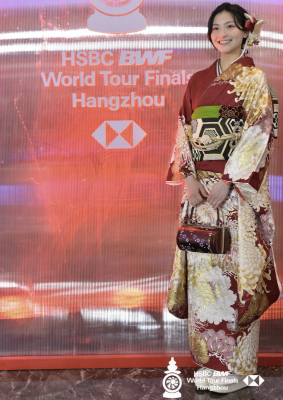 (엑스포츠뉴스 김현기 기자) 일본 여자 배드민턴 선수인 미야자키 도모카가 2025 세계배드민턴연맹(BWF) 갈라 어워즈에서 자국 전통 의상인 기모노를 입고 등장해 시선을 모았다.