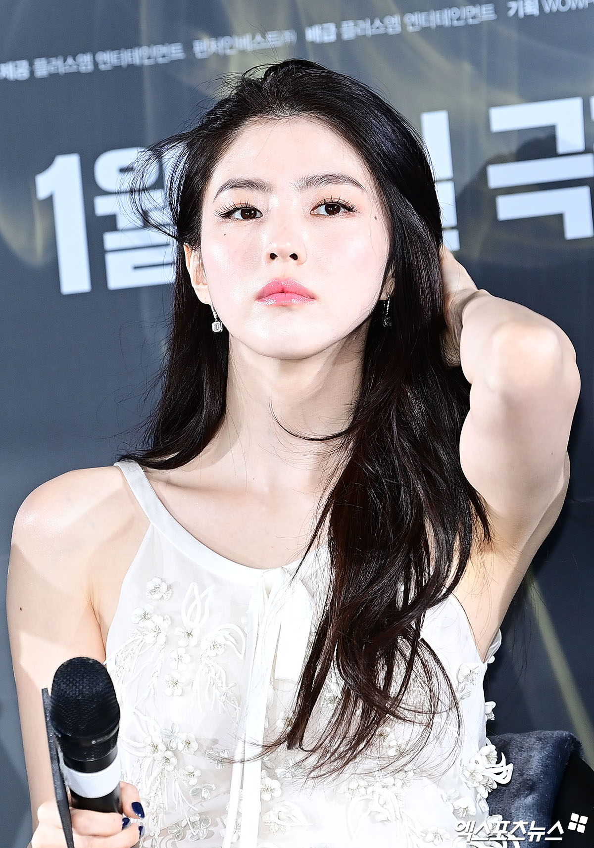 이날 제작보고회에 참석한 배우 한소희가 인사하고 있다.