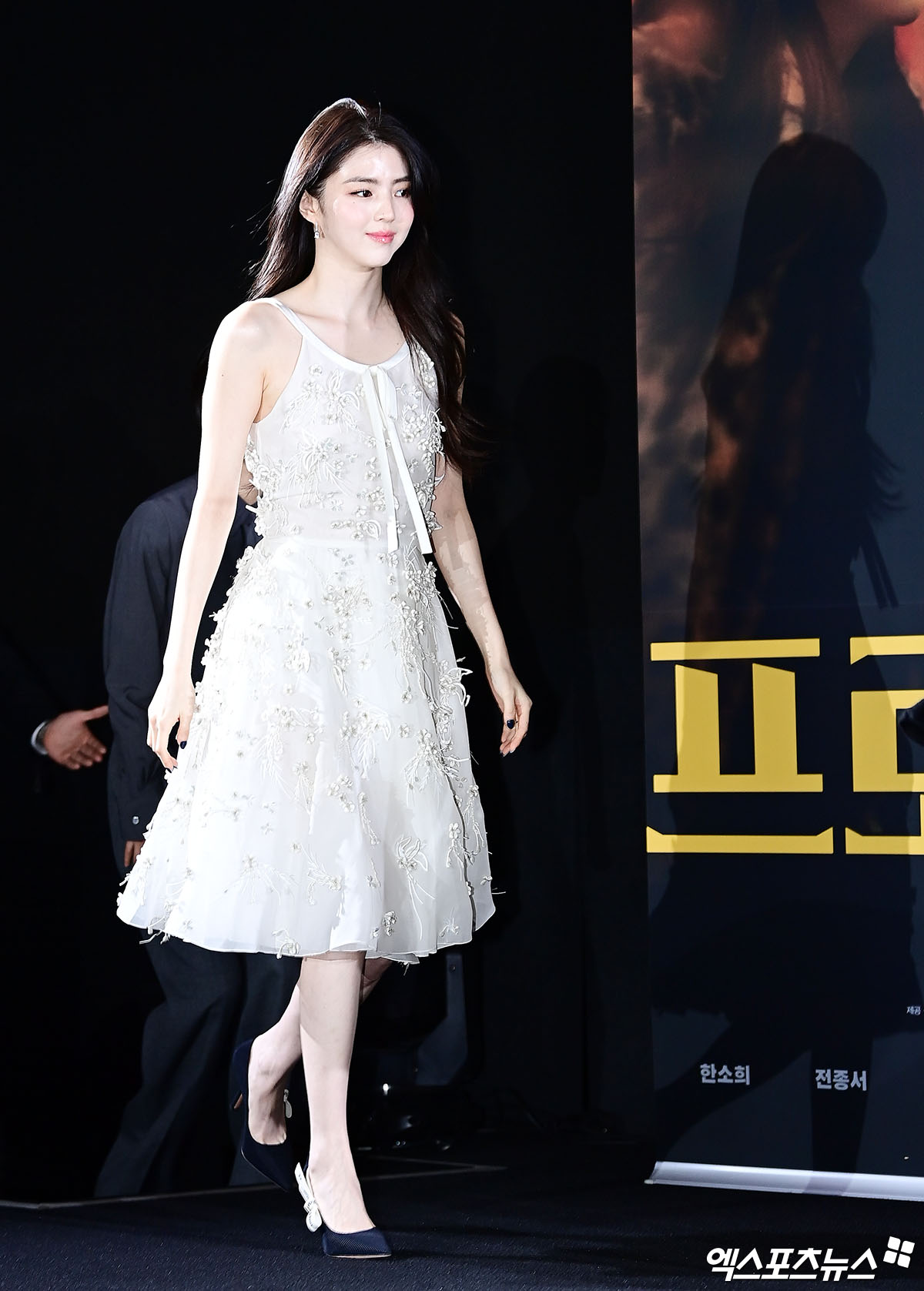 이날 제작보고회에 참석한 배우 한소희가 인사하고 있다.