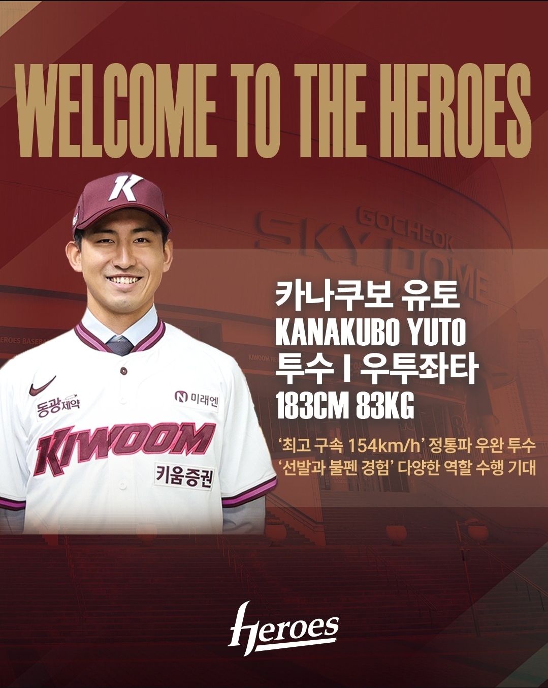 ​(엑스포츠뉴스 유준상 기자) 키움 히어로즈가 우완투수 카나쿠보 유토와 아시아쿼터 계약을 마무리한 가운데, 일본에서도 카나쿠보의 한국행을 주목하고 있다.