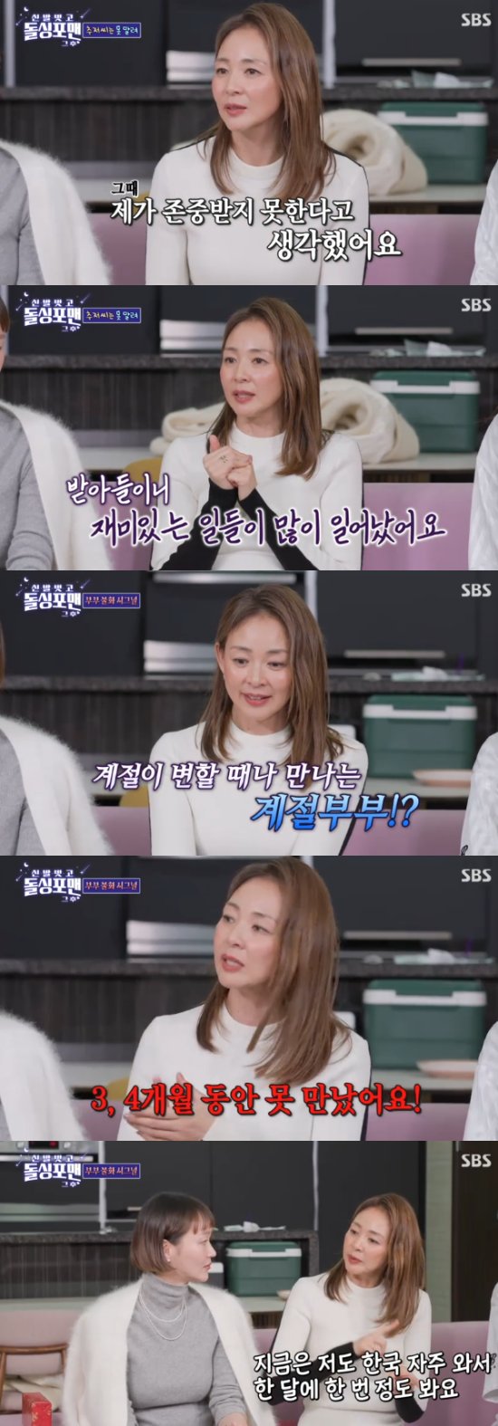 김준호는 "그런데 부부가 연락을 거의 안 하더라. 내 기준에서는 상상이 안된다. 저는 지민이에게 다 보고를 한다"고 신기해했고, 야노시호는 "성훈 씨는 연락이 없다. 그런데 좋은 점도 있다. 같이 붙어있을 때는 정말 많이 싸웠는데, 떨어져있으니 서로에게 감사함이 생기더라"고 말해 눈길을 끌었다.
