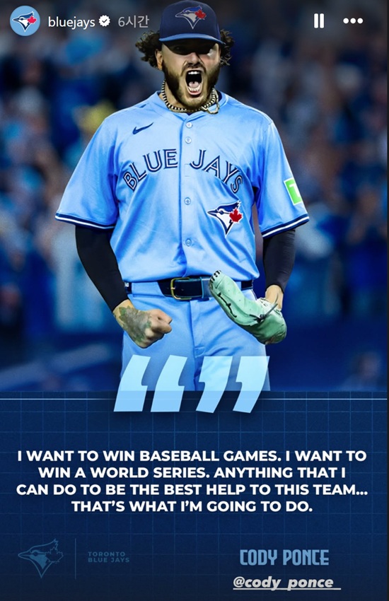 (엑스포츠뉴스 김근한 기자) '443억의 사나이' 투수 코디 폰세가 토론토 블루제이스의 월드시리즈 우승을 향한 각오를 밝혔다.