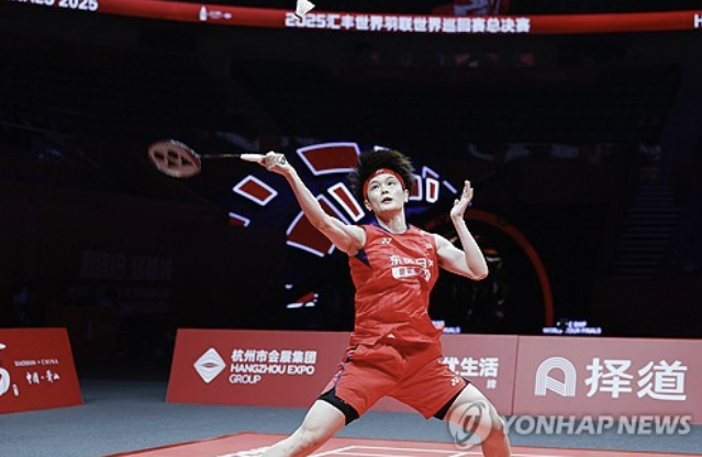 왕즈이는 18일(한국시간) 중국 항저우 올림픽 스포츠센터 체육관에서 열린 'BWF 2025 월드투어 파이널' 여자단식 B조 2차전에서 라차녹 인타논(태국·세계 8위)을 게임스코어 2-0(21-17 21-19)로 이겼다. 경기 시작 48분 만에 승리를 추가했다.