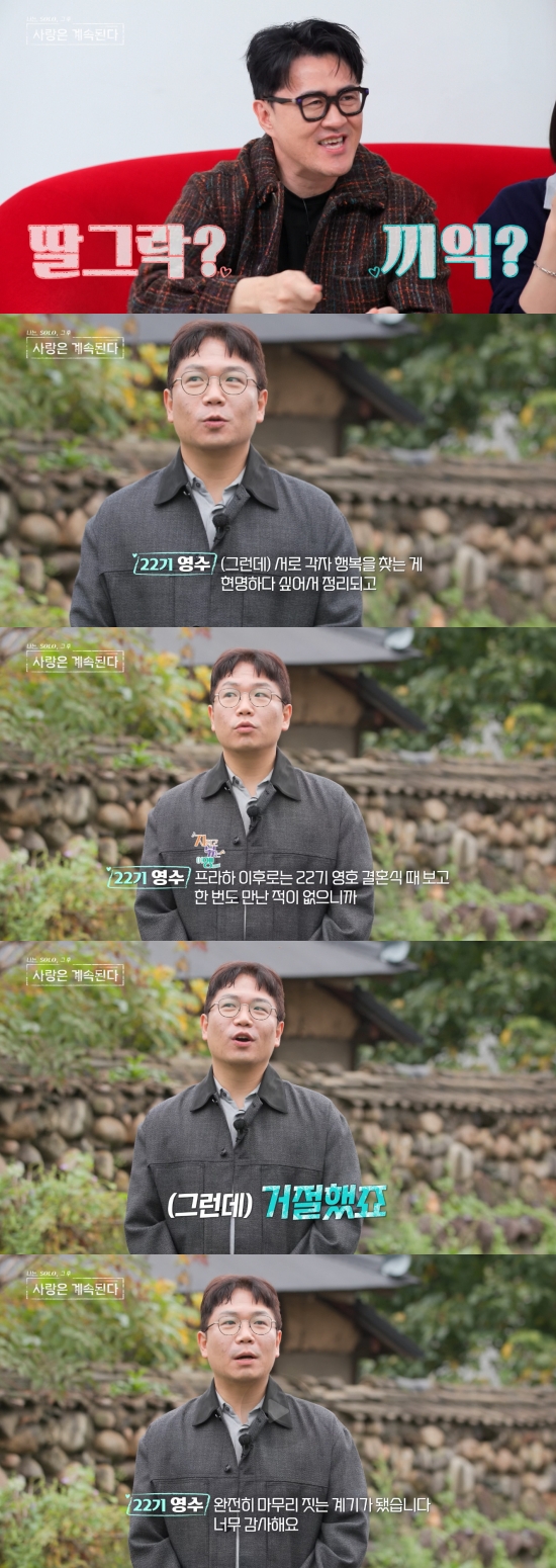 22기 영수는 제작진과의 인터뷰에서 "'지볶행' 방송 이후 연애도 했었다. 그런데 서로 각자 행복을 찾는 게 현명하다 싶어서 정리했다"고 안타까운 소식을 전했다.