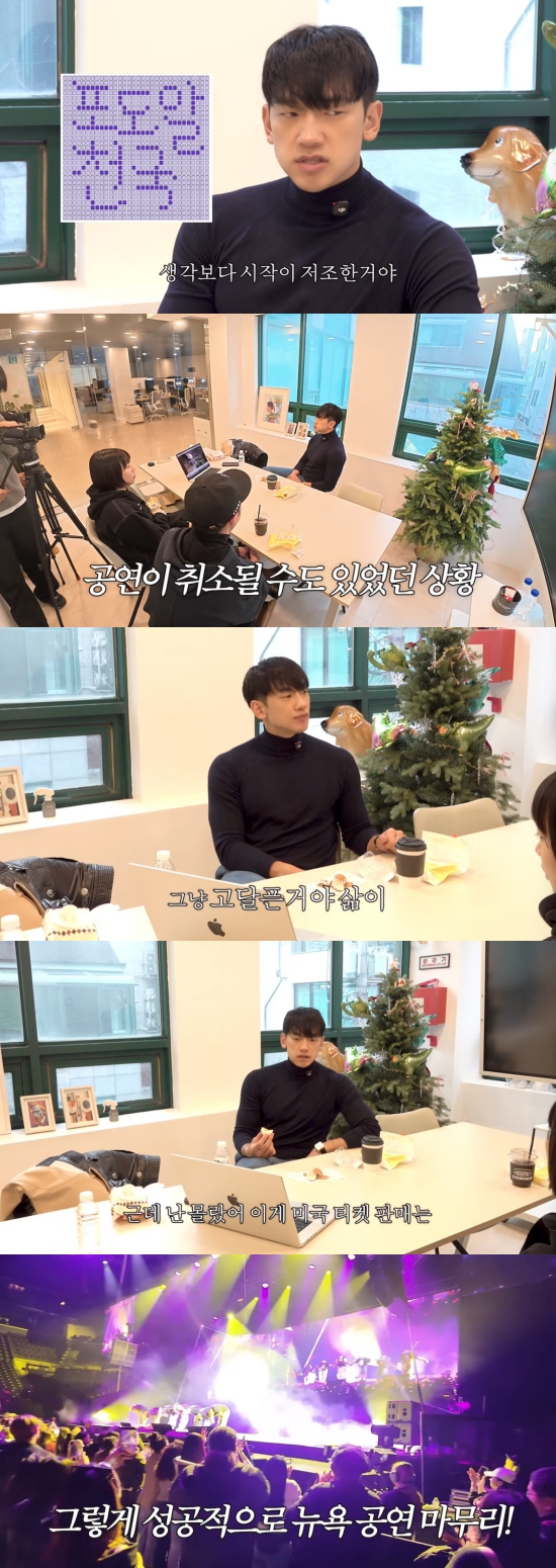 한숨을 쉰 비는 "문제가 또 있었다. 뉴욕 공연하기 전 날 다른 사람 공연이 있는 거다. 7시간 만에 우리 무대 세팅을 다시 해야 했다. 가기 전까지 되겠냐고 이메일을 보내도 답변이 안왔다. 그래서 현지 프로덕션이랑 이야기를 했다. 담당자인 에디가 자기 30년 인생을 업계 경력을 걸고 안 되지만 될 수도 있게 해주겠다고 했다. 그런데 뻥일 수도 있지 않나. 그렇지만 어쩔 수 없었다. 결론은 그냥 비행기를 탔다"고 털어놨다.