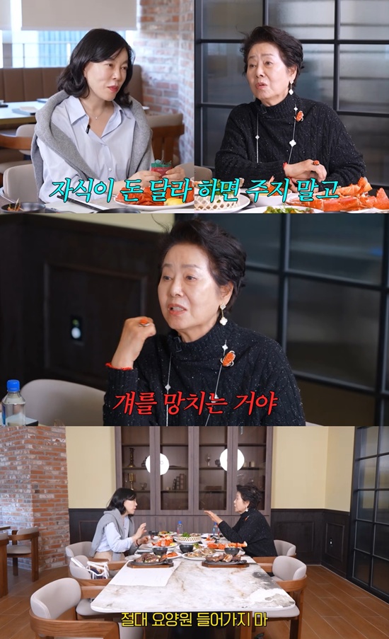 최회정이 "돈이 많아도 주지 말아야 하냐"고 묻자, 선우용여는 "내가 주고 싶으면 줘도 된다. 달라고 할 때 주는 건 걔를 망치는 거다"라고 철학을 밝혔다.