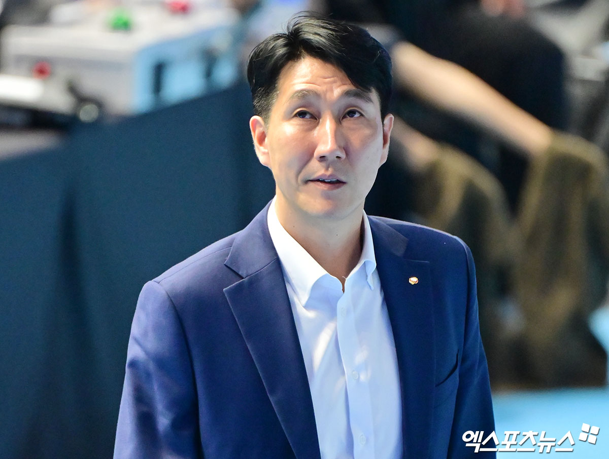 (엑스포츠뉴스 인천, 김한준 기자) 19일 오후 인천 계양체육관에서 열린 '진에어 2025-2026 V-리그' 대한항공과 한국전력의 경기, 한국전력 권영민 감독이 비디오 판독을 기다리고 있다.