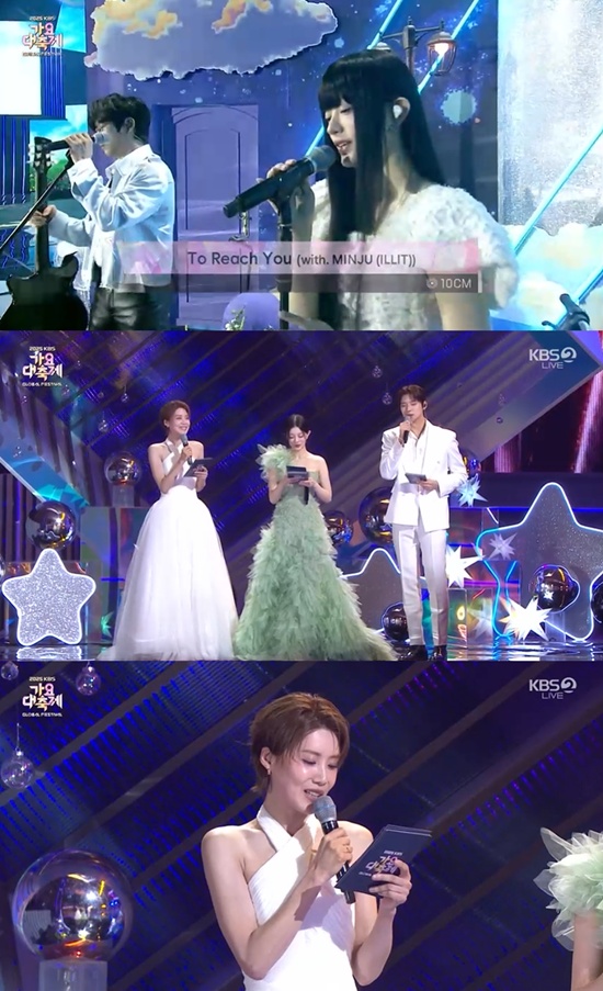 이날 십센치는 아일릿의 '젤리어스(Jellyous)'를 커버해 들려줬다. 이어 아일릿 멤버 민주와 함께 '너에게 닿기를' 듀엣 무대를 펼쳐 색다른 보컬 조합이 이목을 모았다.