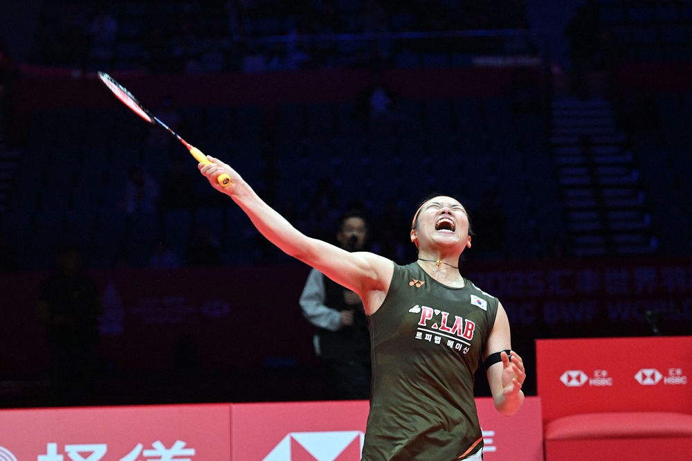 안세영은 20일(한국시간) 중국 항저우의 올림픽스포츠센터에서 열린 세계배드민턴연맹(BWF) 월드투어 파이널 2025 여자 단식 준결승에서 세계랭킹 3위 일본의 야마구치 아카네를 게임 스코어 2-0(21-15 21-12)으로 이겼다.