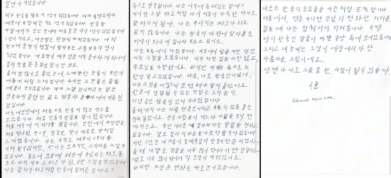 (엑스포츠뉴스 황수연 기자) '흑백요리사 시즌1' 준우승자 에드워드 리가 한국 팬들에게 감사한 마음을 전하기 위해 한글로 쓴 편지를 공개했다.