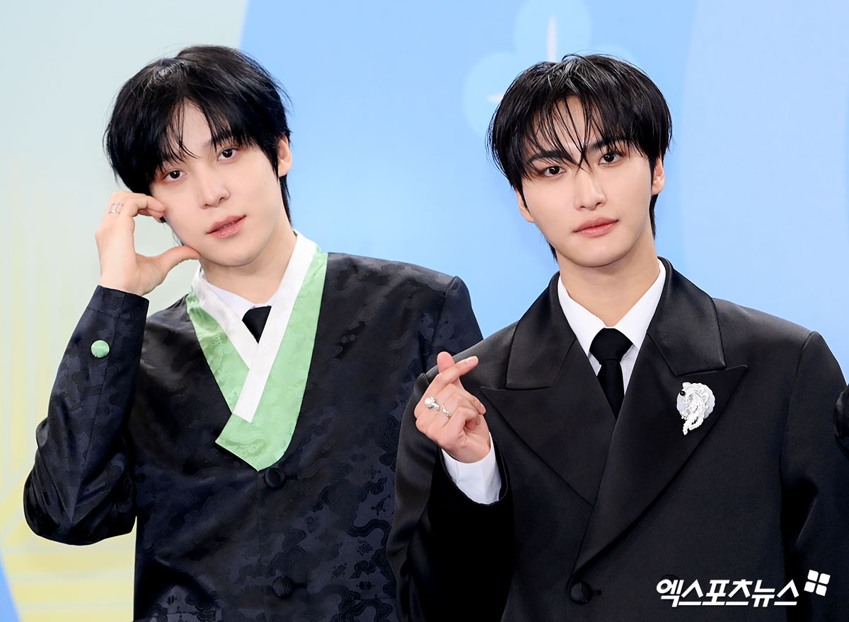 '돌박이일' 에이티즈 윤호, 성화가 포토타임을 갖고 있다.