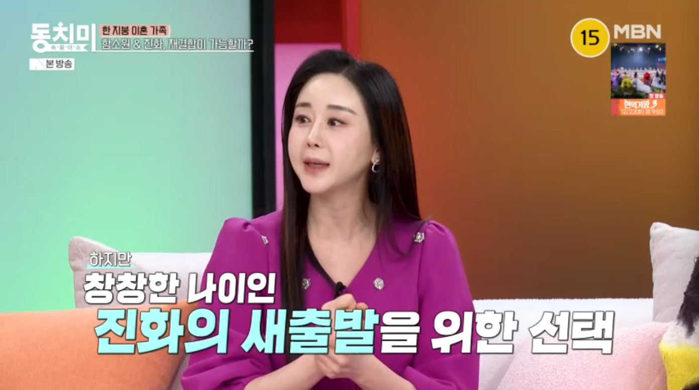 20일 방송된 MBN '속풀이쇼 동치미'에서는 함소원이 이혼한지 3년 된 전 남편 진화와의 잦은 방문으로 한 지붕 동거를 이어가는 모습이 전파를 탔다.