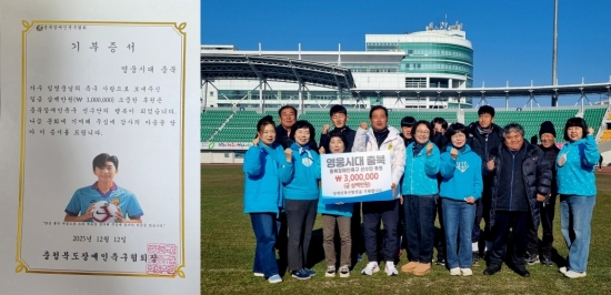 (엑스포츠뉴스 이정범 기자) '영웅시대충북'이 연말을 맞아 충북장애인축구협회에 기부금을 전달했다.