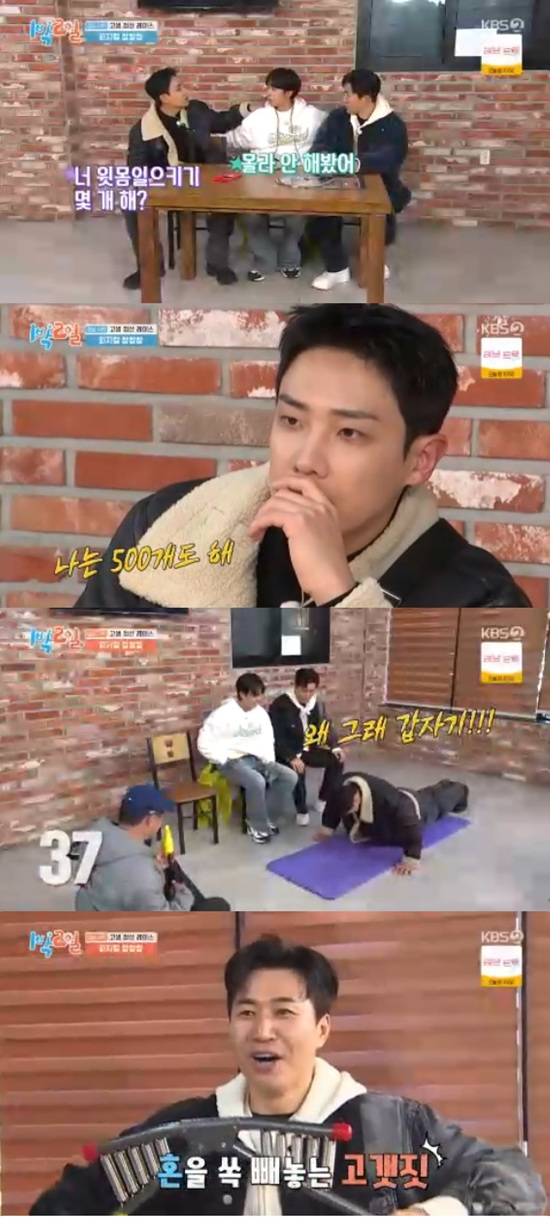 이준은 팔굽혀펴기를 앞두고 "난 500개도 한다"고 자신했다.