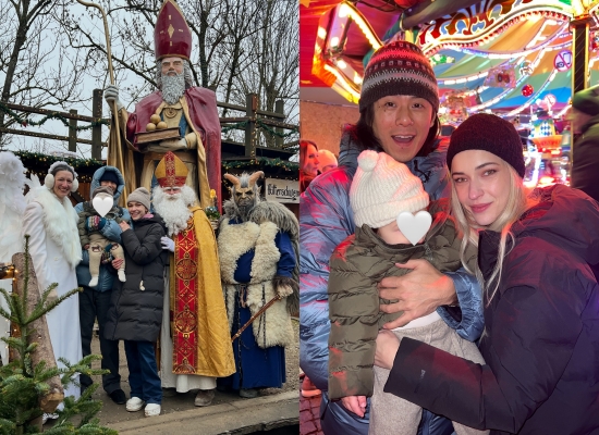 공개된 사진 속에는 독일 현지 크리스마스 마켓과 놀이기구, 화려한 조명 아래에서 시간을 보내는 세 사람의 모습이 담겼다.