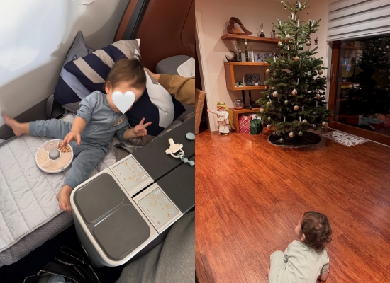 특히 아들 루빈은 비행기 좌석에서 편안하게 쉬거나 크리스마스 트리를 바라보는 모습, 부모의 품에 안겨 축제를 즐기는 모습 등으로 눈길을 끌었다. 얼굴은 스티커로 가려졌지만, 작고 사랑스러운 뒷모습만으로도 훈훈함을 자아냈다.