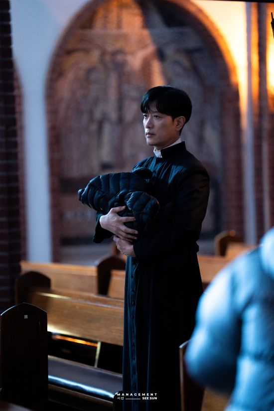 공개된 사진 속 박희순은 사제복을 입고 아이를 품에 안은 채 어딘가를 응시하고 있어 눈길을 끈다. 그는 따뜻하고 부드러운 눈빛을 보이다가도 경건하고 힘 있는 표정으로 캐릭터에 대한 궁금증을 고조시킨다. 컷마다 묵직한 존재감을 보여준 박희순은 깊은 인상을 남기며 현장 스태프들의 찬사를 받았다는 후문이다.