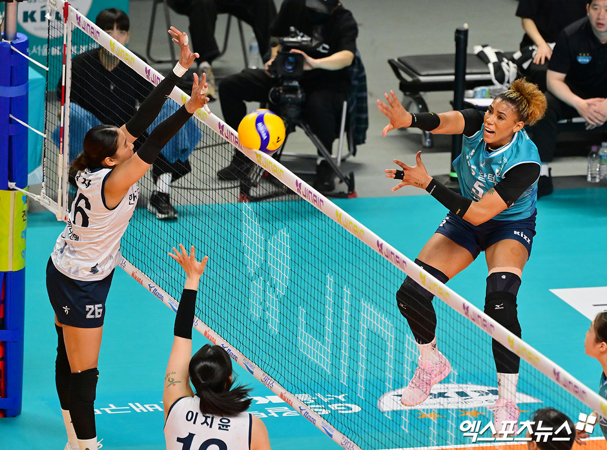 (엑스포츠뉴스 장충, 김한준 기자) 23일 오후 서울 장충체육관에서 열린 '진에어 2025-2026 V-리그' GS칼텍스와 한국도로공사의 경기, GS칼텍스 실바가 공격을 시도하고 있다.