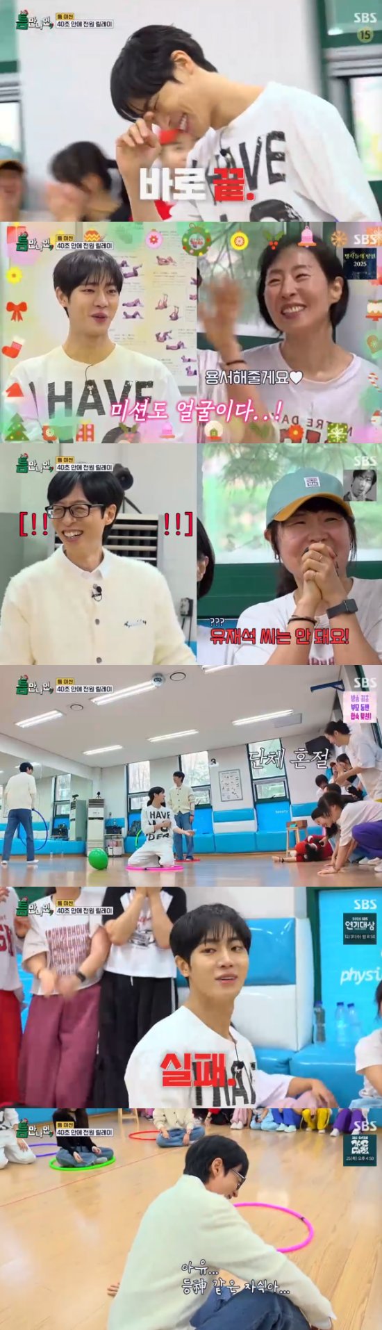 미션 실패 후 피트니스 센터를 나서던 유재석은 "마지막에 진짜...내가 미안하다. 근데 모두 엉망진창이었던 것 같다"고 했다. 그러면서 이날 구멍이었던 추영우를 바라보며 "근데 내가 마지막에 실패했을 때 살짝 웃더라?"고 했다.