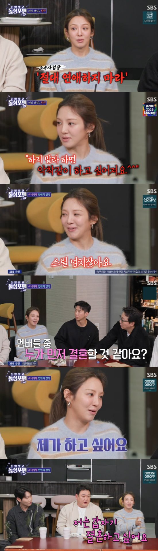 (엑스포츠뉴스 오수정 기자) '돌싱포맨'에서 효연이 소녀시대 멤버들 중에서 가장 먼저 결혼을 하고 싶다는 소망을 드러냈다.