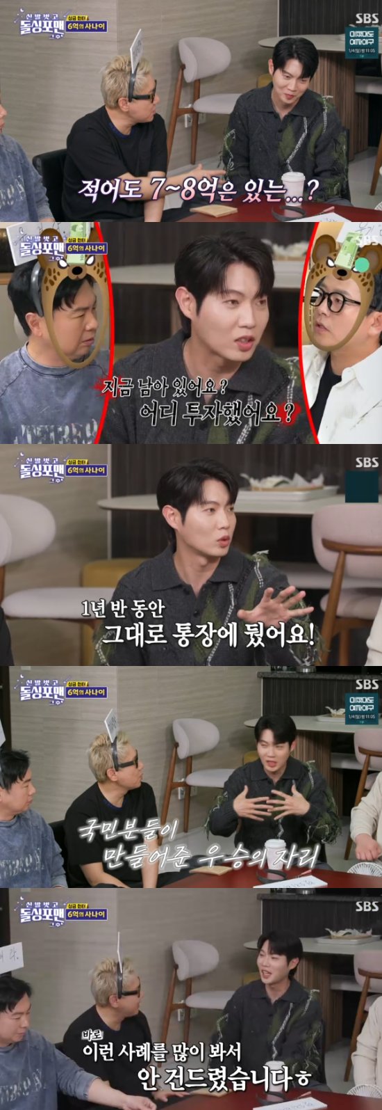 이날 방송에서 이상민은 손태진에게 "오디션 상금만 적어도 7~8억 원정도 되는 걸로 안다"고 했고, 탁재훈은 "상금 어디에 썼냐"고 물었다.