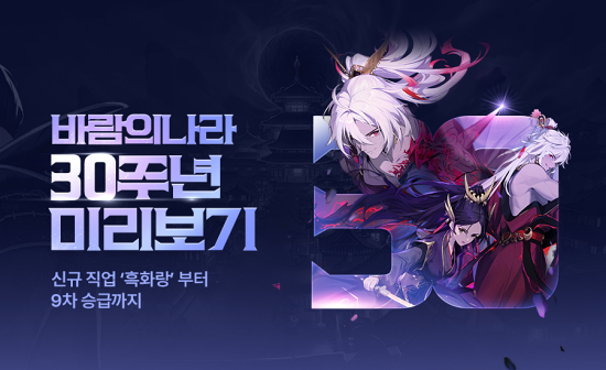 1996년 출시해 2026년 서비스 30주년을 맞이하는 ‘바람의나라’는 내년 4월 기념 업데이트에서 신규 지역 ‘신라’와 신규 직업 ‘흑화랑’을 중심으로 풍성한 규모의 신규 콘텐츠를 업데이트할 계획이다. 또한 최대 레벨을 950까지 확장하고 9차 승급을 도입해 새로운 전투 경험을 제공하는 한편, 신규 레이드 5단계 2종, 신규 전설 장비 ‘브리트라’, 신규 협동 콘텐츠 ‘괴력난신’, 신규 성장 시스템 ‘신력’ 등 성장 탄력과 새로운 재미를 부여하는 다채로운 신규 콘텐츠도 추가한다.