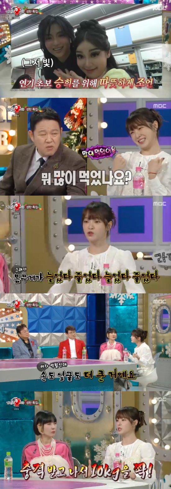 (엑스포츠뉴스 오수정 기자) '라디오스타'에서 승희가 김태리와의 투샷에 충격을 받아 10kg을 감량했다고 고백했다.