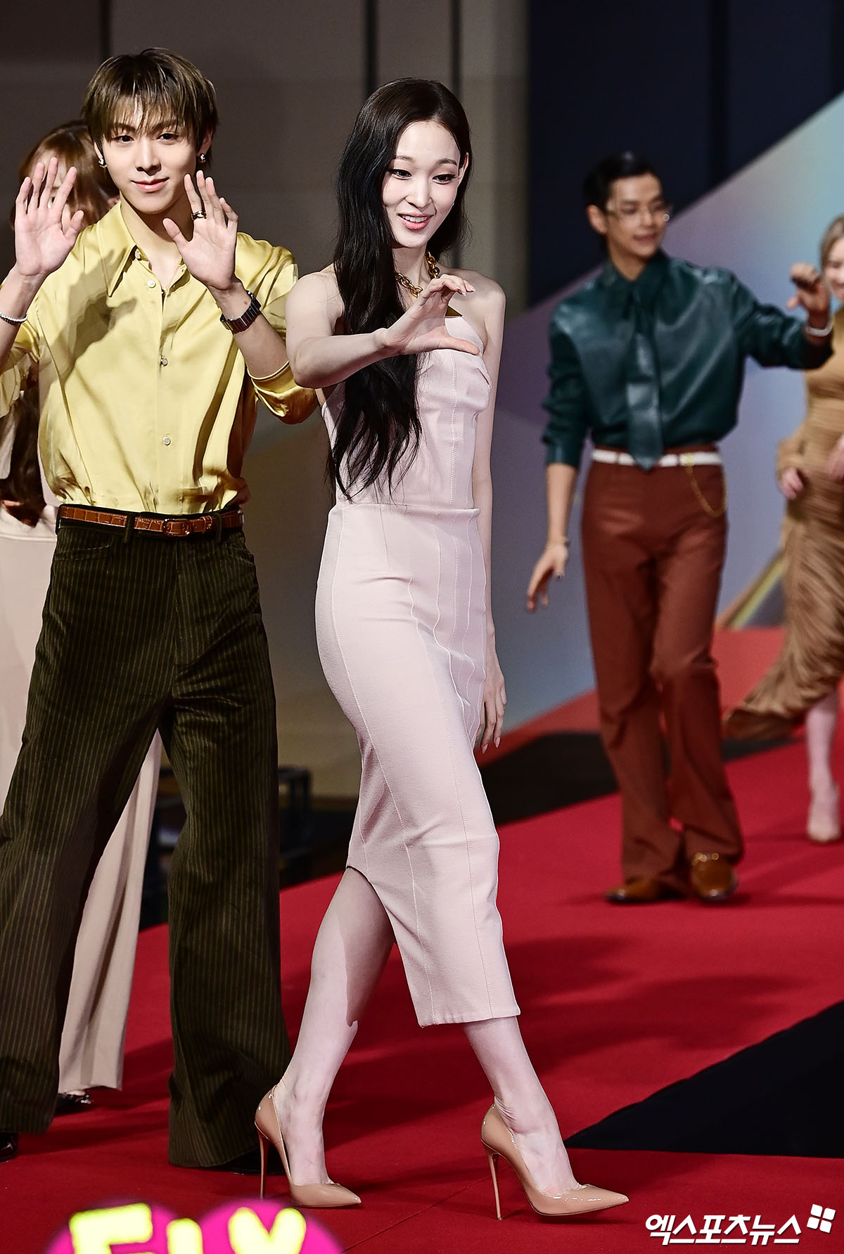 이날 레드카펫 행사에 참석한 올데이프로젝트 애니가 포토타임을 갖고 있다.
