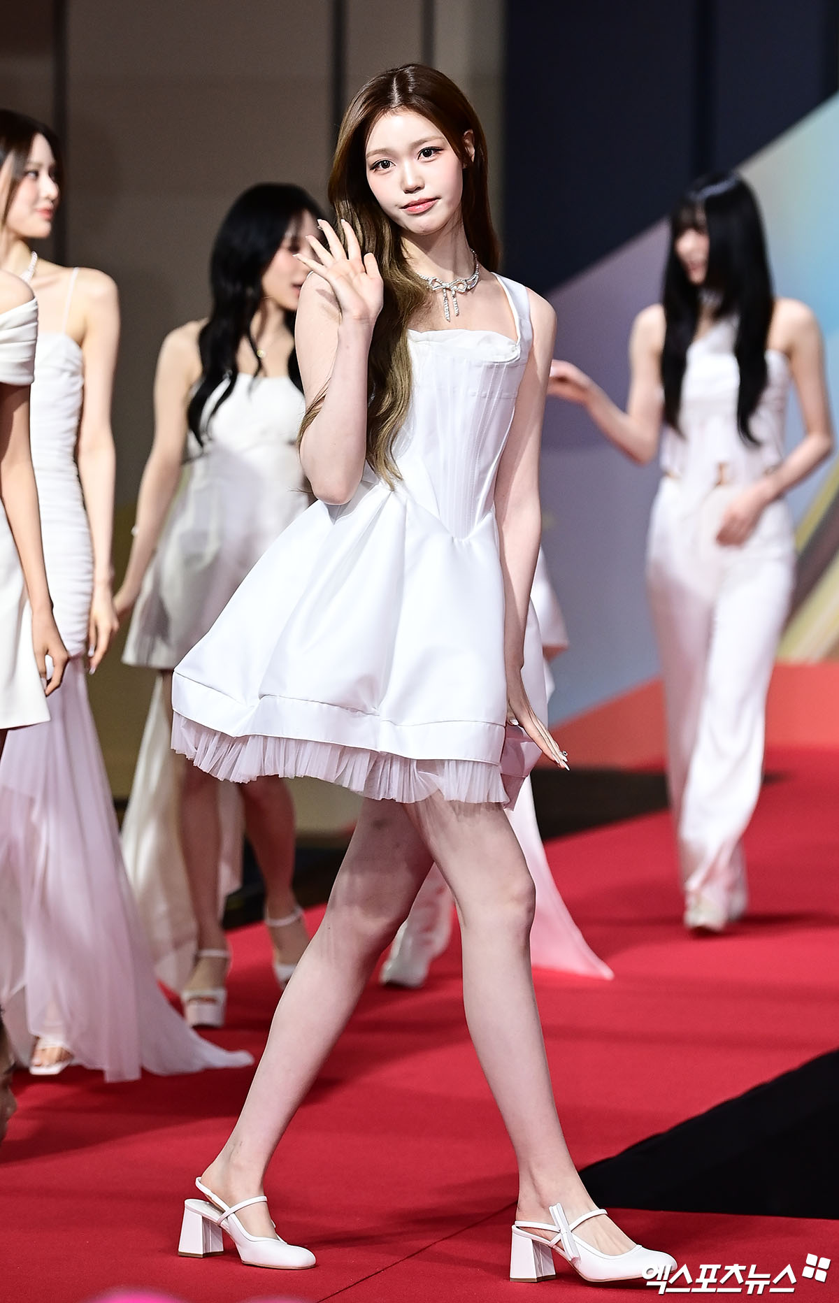 이날 레드카펫 행사에 참석한 이즈나 정세비가 포토타임을 갖고 있다.
