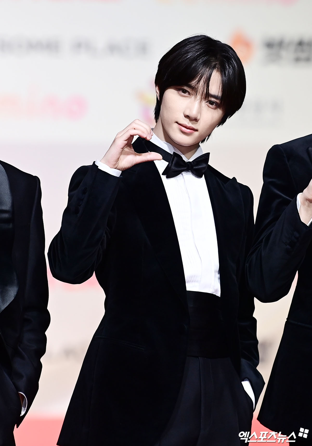 이날 레드카펫 행사에 참석한 투모로우바이투게더 범규가 포토타임을 갖고 있다.
