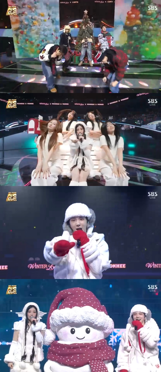 루돌프즈(코르티즈)는 '징글 벨 록'을 불렀고, 눈사람즈(보이넥스트도어 운학·아일릿 원희)는 아이유의 '미리 메리 크리스마스'를 무대를 선보였다.