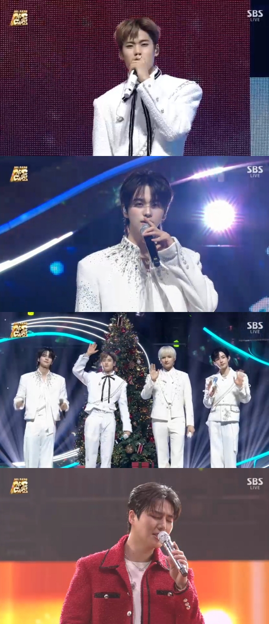 이어 귀공자즈(투모로우바이투게더 휴닝카이· 제로베이스원 장하오·라이즈 소희·투어스 신유)는 데이식스의 '예뻤어'로 가창력을 뽐냈고, 산타대장(데이식스 영케이)은 '브링 미 러브'를 불러 환호를 자아냈다.