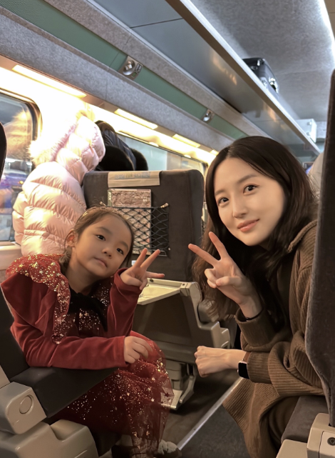 공개된 사진 속 김소영은 딸 수아와 함께 기차에 탑승한 모습. 붕어빵 비주얼을 자랑하며 카메라를 바라보고 있어 눈길을 끈다.