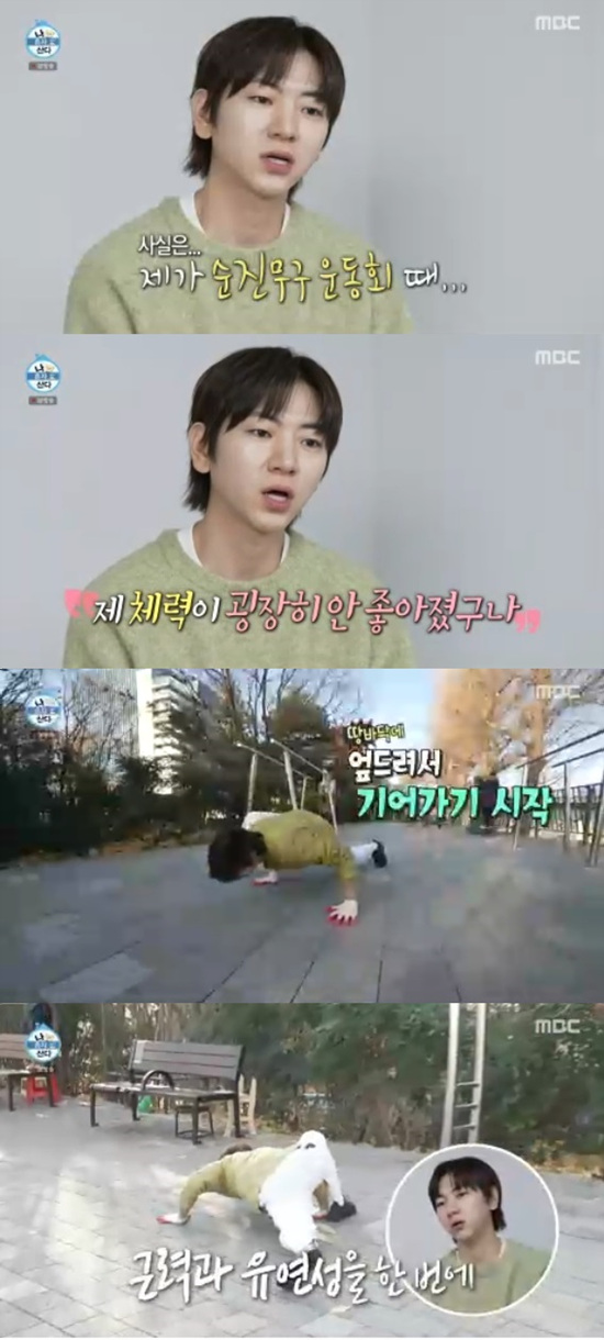 이주승은 스파이더맨 푸시업에 이어 물구나무서기도 하고 산스장의 기구들도 다 해 봤다.