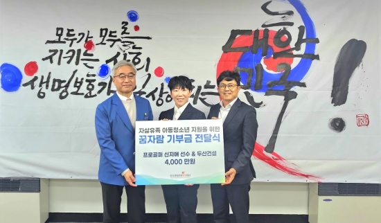 (엑스포츠뉴스 김현기 기자) 골프 선수 신지애가 두산건설과 함께 자살 유족 아동·청소년 지원을 위한 꿈자람 사업 기부금 4000만원을 전달했다.