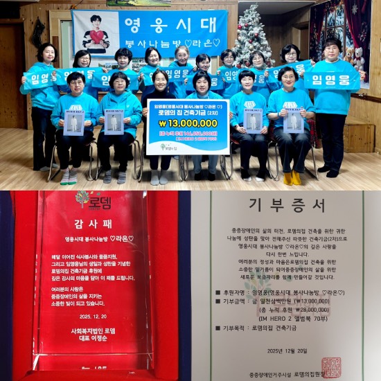 임영웅 팬클럽 '라온', 성탄 맞아 로뎀의집 재건축 기금 1,300만 원 기부