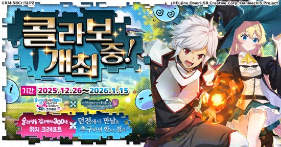 이번 컬래버레이션을 통해 애니메이션 '던만추 V'의 주인공 벨 크라넬, 아이즈 발렌슈타인 등 주요 캐릭터들이 '슬라임 300년'의 세계관에 등장한다.
