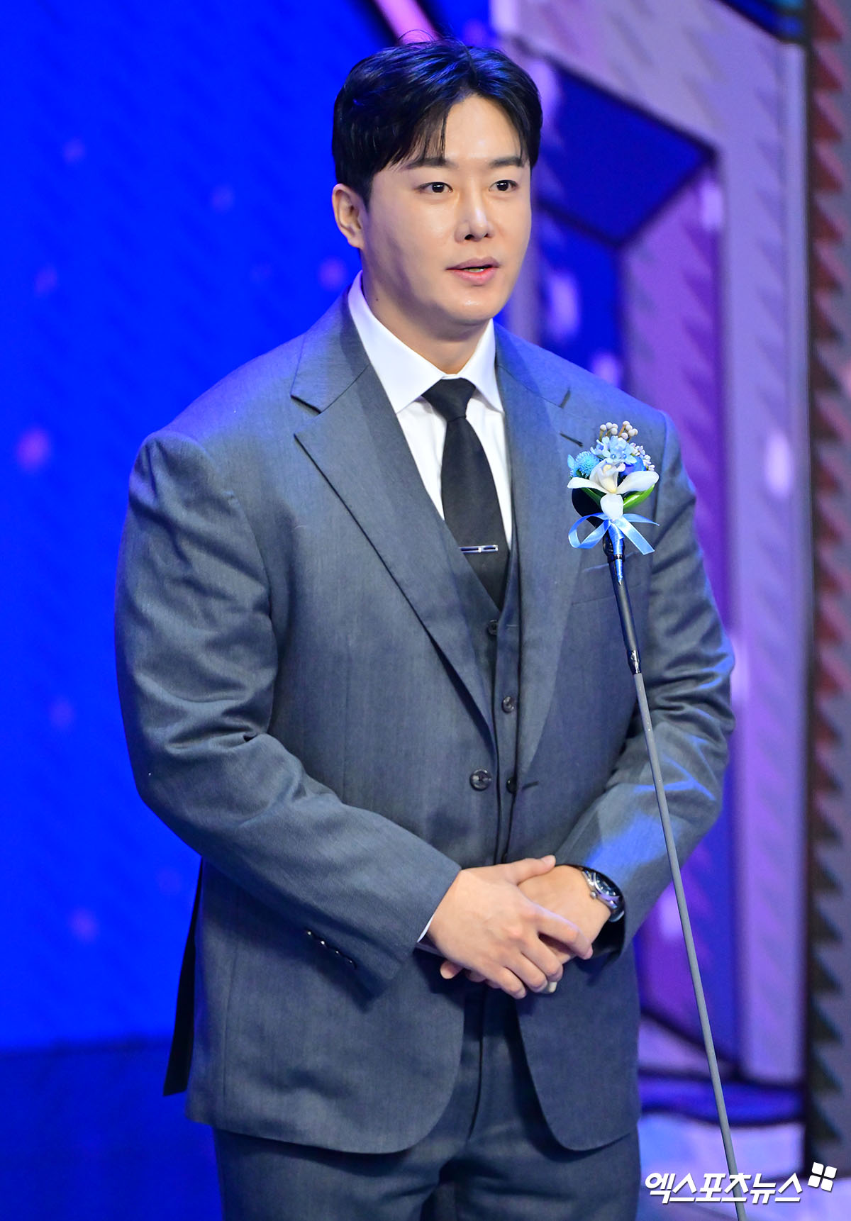 (엑스포츠뉴스 상암, 김한준 기자) 27일 오후 서울 상암 콜로세움에서 열린 '2025 SOOP 스트리머 대상' 시상식, 올해의 수상 스트리머를 수상한 마예준이 소감을 말하고 있다.