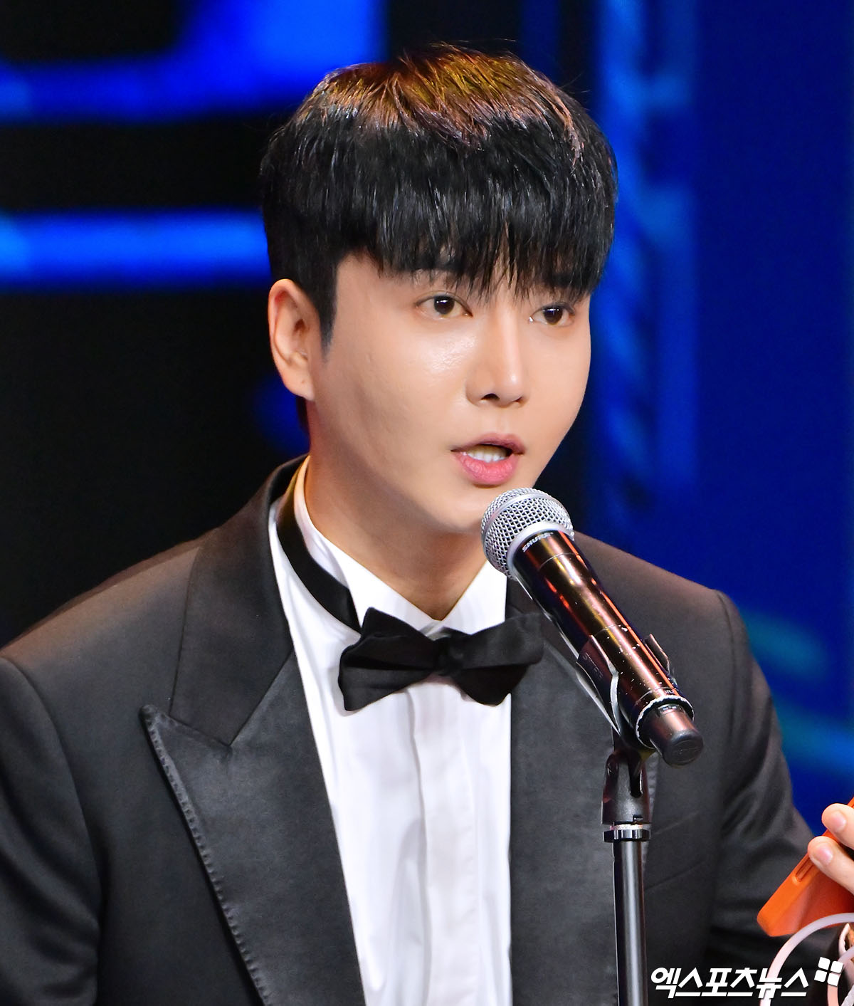 (엑스포츠뉴스 상암, 김한준 기자) 27일 오후 서울 상암 콜로세움에서 열린 '2025 SOOP 스트리머 대상' 시상식, 올해의 스트리머를 수상한 김인호가 소감을 말하고 있다.