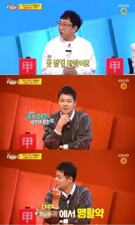 전현무는 박명수가 "못 받기를 바랐다"고 하자 "날 왜 줬을까 생각해 보니 올해 '사당귀'를 열심히 하기는 했다"고 말했다.