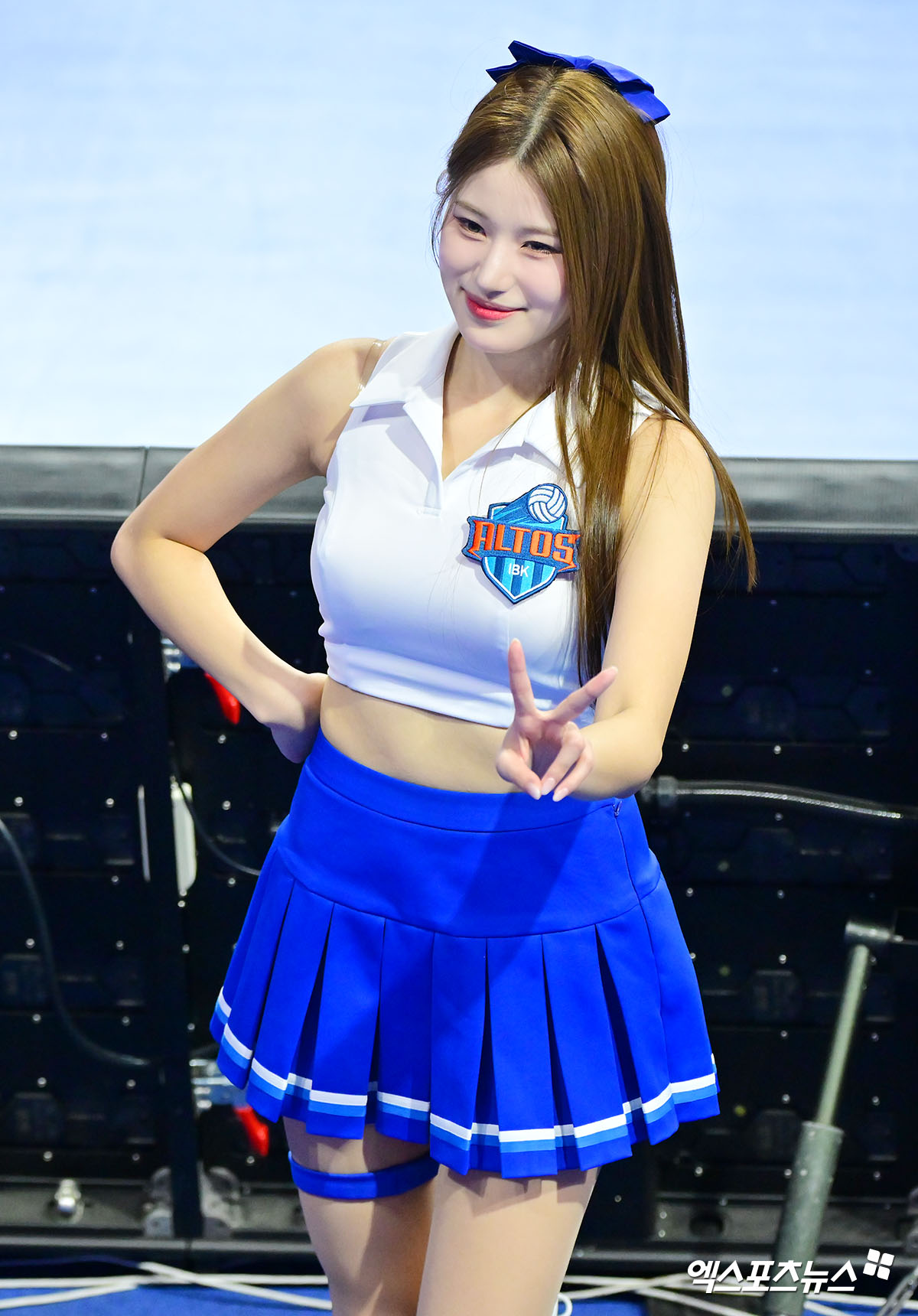 (엑스포츠뉴스 화성, 김한준 기자) 28일 오후 경기도 화성 종합실내체육관에 열린 '진에어 2025-2026 V-리그' IBK 기업은행과 정관장의 경기, 이예빈 치어리더가 열띤 응원을 선보이고 있다.