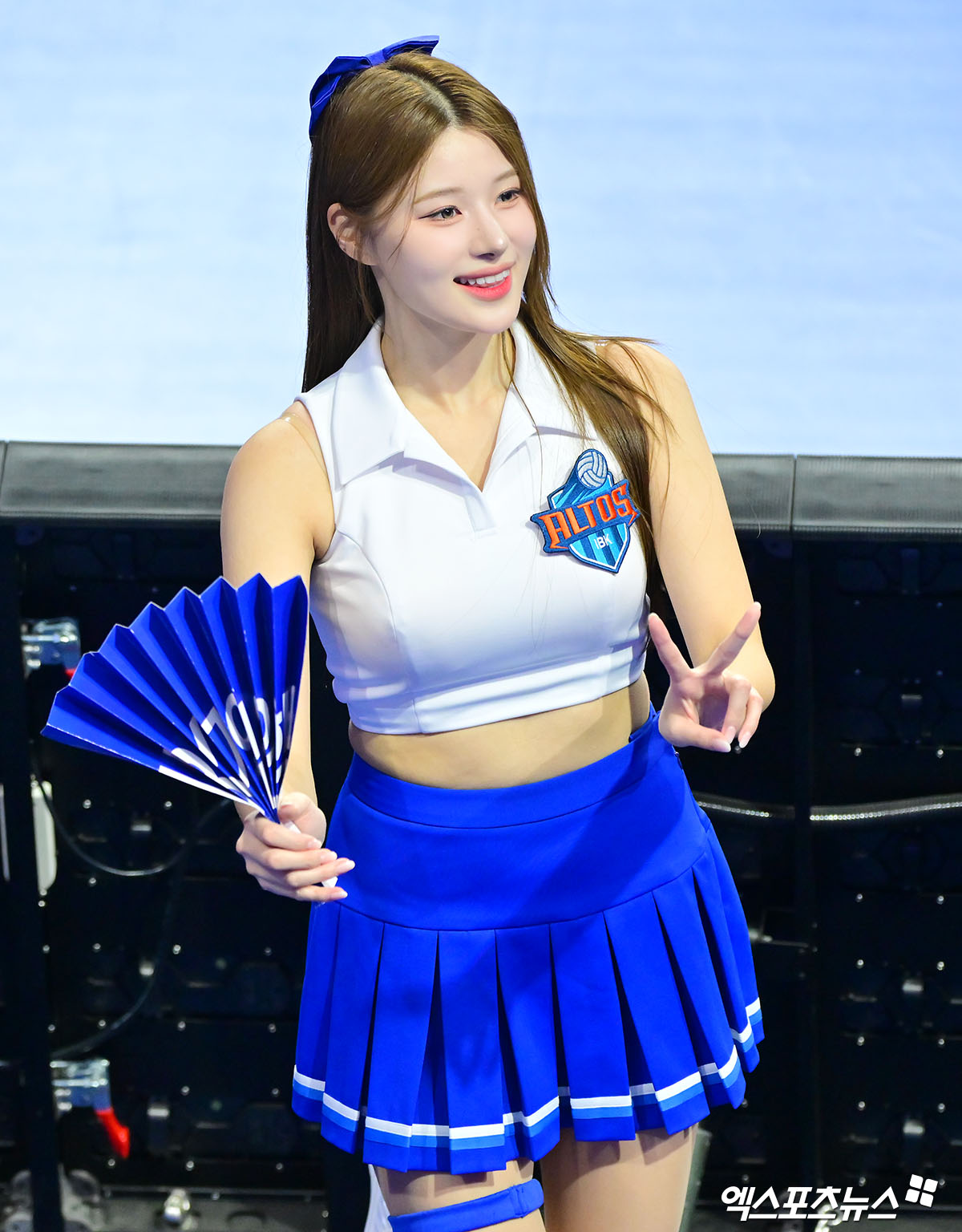 (엑스포츠뉴스 화성, 김한준 기자) 28일 오후 경기도 화성 종합실내체육관에 열린 '진에어 2025-2026 V-리그' IBK 기업은행과 정관장의 경기, 이예빈 치어리더가 열띤 응원을 선보이고 있다.
