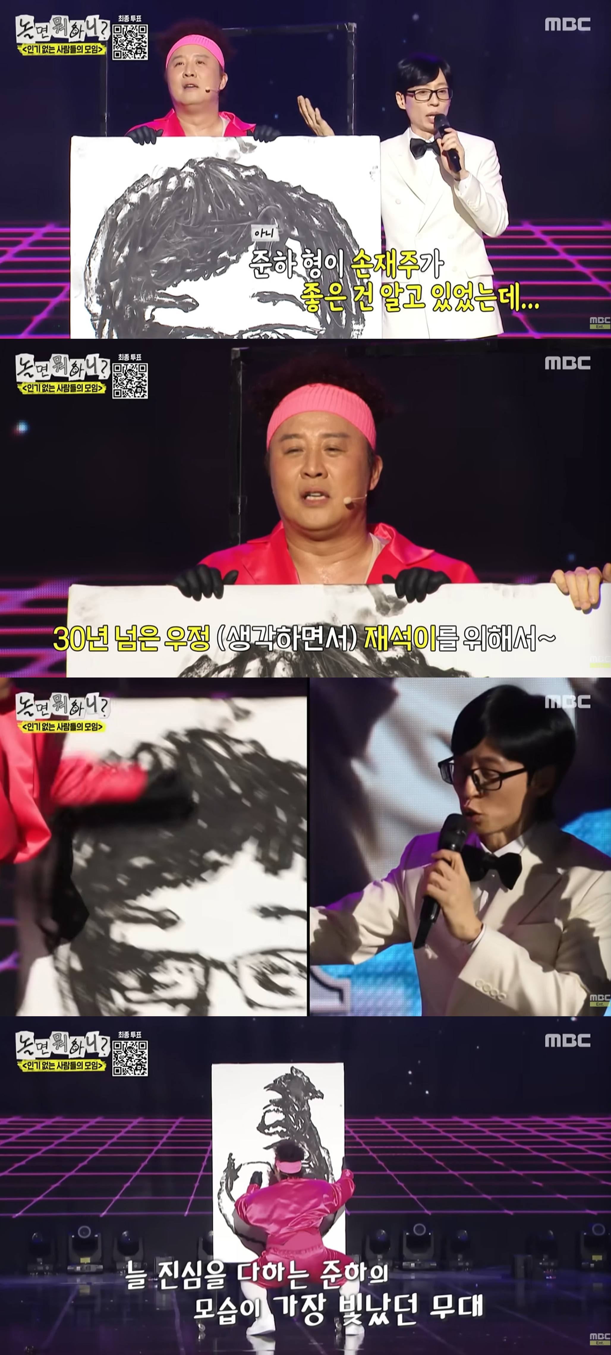 유재석은 “저에게 늘 든든한 형이고, 웃음을 주는 형이자 동료”라며 고마움을 전했고, 정준하는 “30년 우정을 생각하며 그렸다”고 말하며 눈시울을 붉혔다. 땀에 흠뻑 젖은 채 “재석이를 위해서였다”고 덧붙인 그의 진심에 현장은 눈물바다가 됐다.