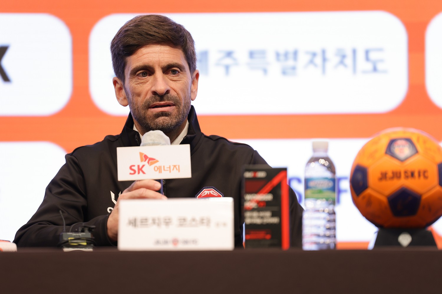 코스타 감독은 29일 서울 강서구 메이필드호텔에서 제9대 제주SK 감독 취임 기자회견을 치렀다. 그는 "지금 굉장히 흥분돼 있다. 한국은 저에게 외국이 아니라 거의 고향과 같은 곳"이라며 "한국의 문화와 자연, 사람들의 성실함이 늘 그리웠는데 제주에 오게 돼 감사한 마음뿐"이라고 말했다.