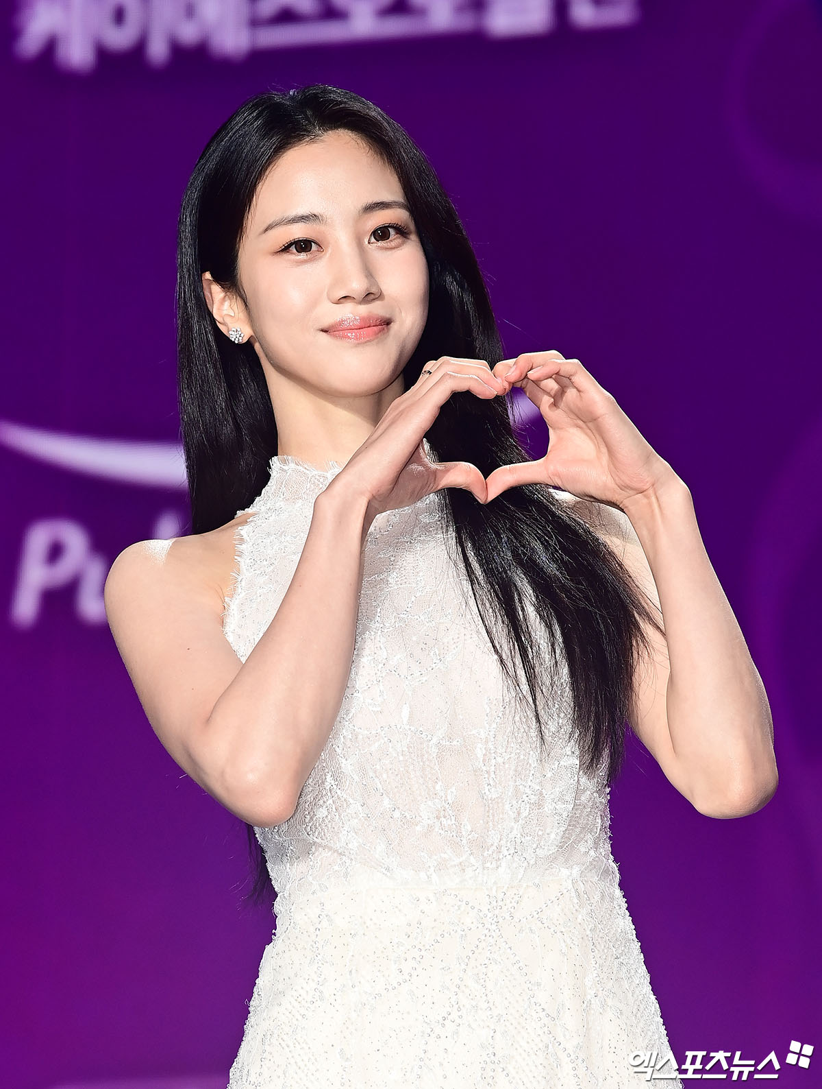 이날 레드카펫 행사에 참석한 배우 홍화연이 포토타임을 갖고 있다.