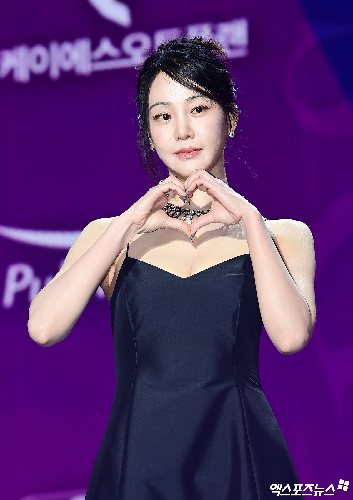 이날 레드카펫 행사에 참석한 배우 한지은이 포토타임을 갖고 있다.