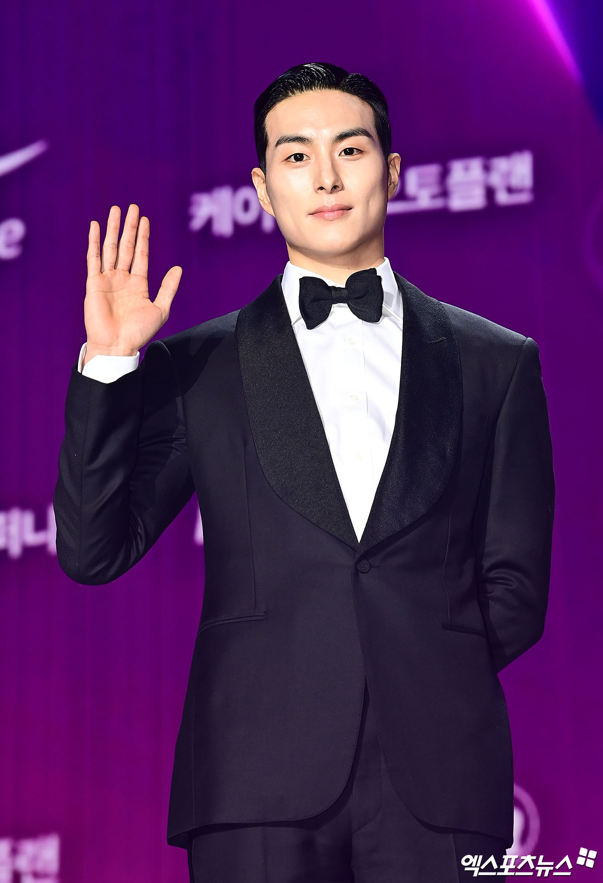 이날 레드카펫 행사에 참석한 배우 정건주가 포토타임을 갖고 있다.
